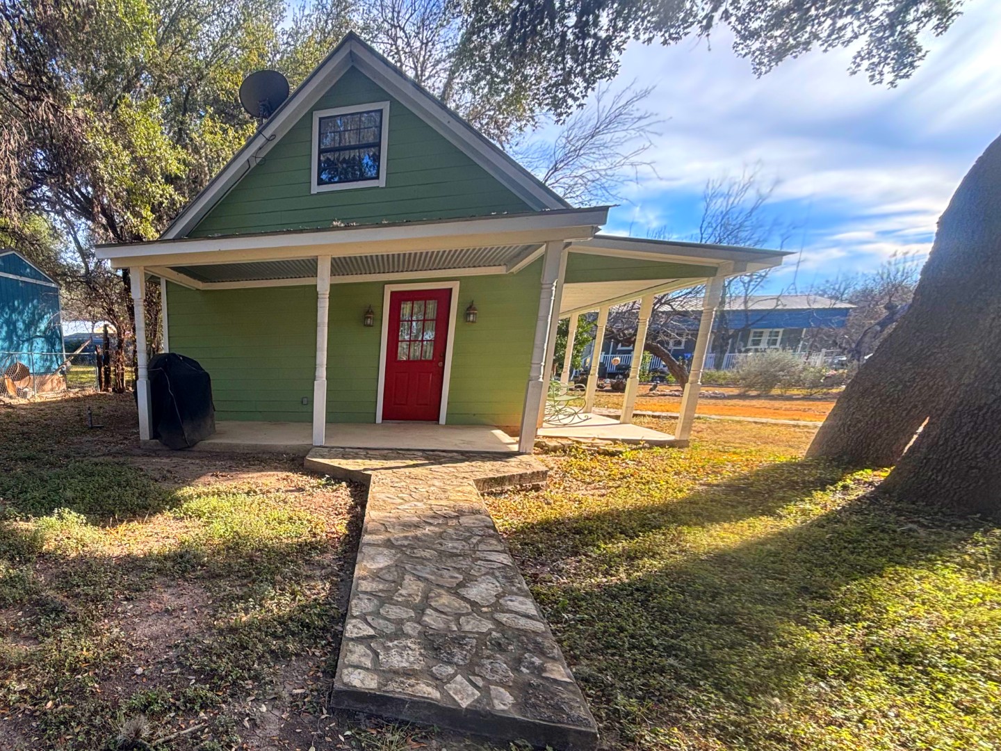 Unprecedented Offering!!! Your Private Hill Country Retreat Awaits! Nestled at the edge of picturesque Camp Wood, TX. Feet from The Mission San Lorenzo Delacruz and pristine Nueces River, this duel -level, 2 bedroom 1 ½ bath 720 Sq Ft cottage flanked by a canopy of oak trees is the perfect blend of comfort, privacy, and endless possibilities. Having been used exclusively as an income producing Air B&B and being set back off a quiet road, you'll enjoy a peaceful, secluded setting. Step inside to a warm custom cypress walls and tile flooring. Enjoy dark stary skies after a day floating the river from a spacious front porch.
